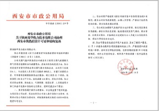 西安市政府通過媒體正式對社會公布我公司市政集中供熱服務電話:029-62873228